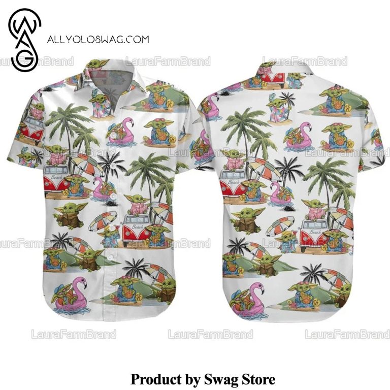 Hawaiian Shirt [Top-selling] Funny Baby Yoda Star Wars Playing At The Beach All Over Print Hawaiian Shirt – White