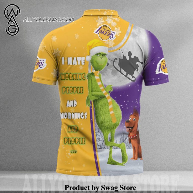 Product description information – [Top-selling] Funny Christmas The Grinch Los Angeles Lakers I Hate Morning People Classic Polo Shirt