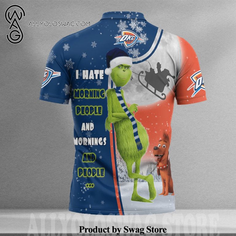 Overall, the [Top-selling] Funny Christmas The Grinch Oklahoma City Thunder I Hate Morning People Full Print Polo Shirt is a timeless wardrobe staple that offers a winning combination of style, comfort, and versatility. Its classic design, breathable fabric, and effortless ability to transition between casual and semi-formal settings have made it a favorite among individuals of all ages and style preferences. Whether worn on the golf course, at the office, or during a casual outing, the polo shirt exudes an air of effortless sophistication and refined style.