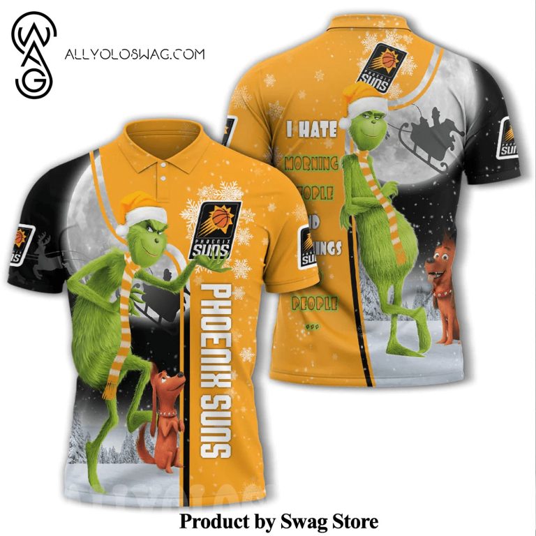 Overall, the [Top-selling] Funny Christmas The Grinch Phoenix Suns I Hate Morning People All Over Printed Polo Shirt is a timeless wardrobe staple that offers a winning combination of style, comfort, and versatility. Its classic design, breathable fabric, and effortless ability to transition between casual and semi-formal settings have made it a favorite among individuals of all ages and style preferences. Whether worn on the golf course, at the office, or during a casual outing, the polo shirt exudes an air of effortless sophistication and refined style.