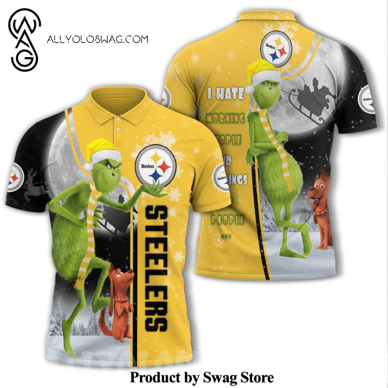 Overall, the [Top-selling] Funny Christmas The Grinch Pittsburgh Steelers I Hate Morning People All Over Printed Polo Shirt is a timeless wardrobe staple that offers a winning combination of style, comfort, and versatility. Its classic design, breathable fabric, and effortless ability to transition between casual and semi-formal settings have made it a favorite among individuals of all ages and style preferences. Whether worn on the golf course, at the office, or during a casual outing, the polo shirt exudes an air of effortless sophistication and refined style.