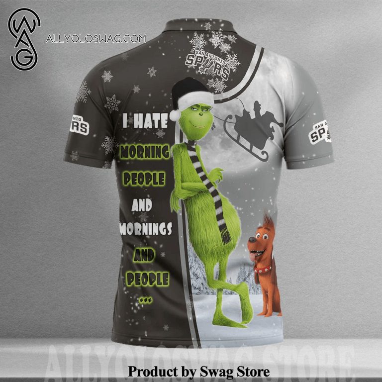 Overall, the [Top-selling] Funny Christmas The Grinch San Antonio Spurs I Hate Morning People All Over Printed Polo Shirt is a timeless wardrobe staple that offers a winning combination of style, comfort, and versatility. Its classic design, breathable fabric, and effortless ability to transition between casual and semi-formal settings have made it a favorite among individuals of all ages and style preferences. Whether worn on the golf course, at the office, or during a casual outing, the polo shirt exudes an air of effortless sophistication and refined style.
