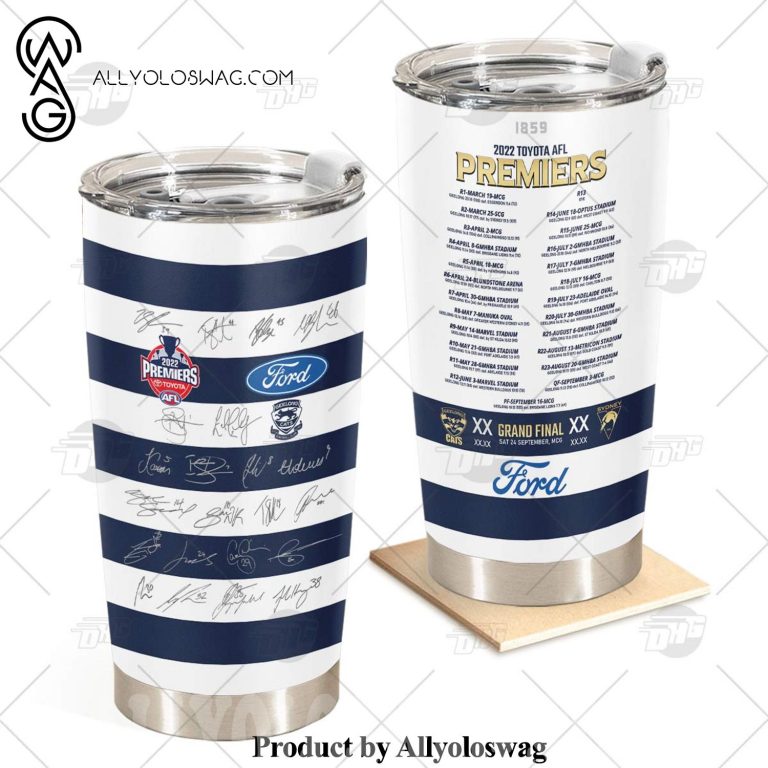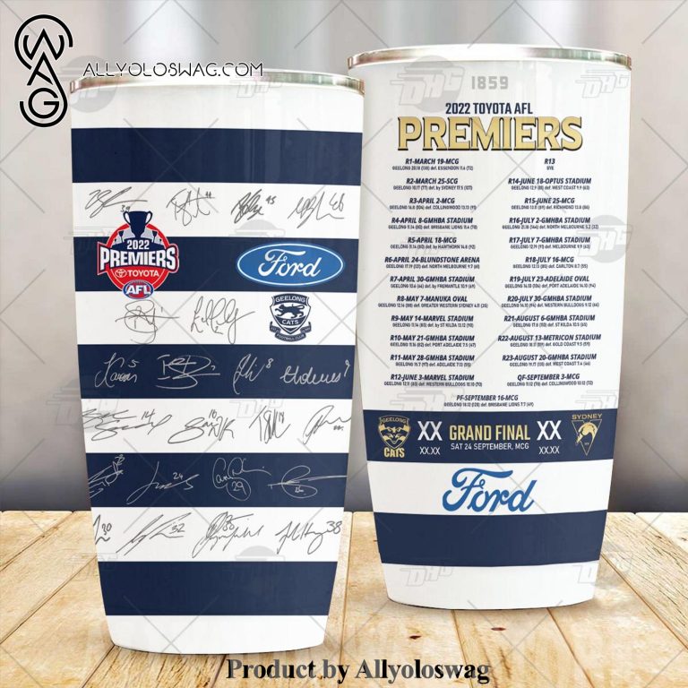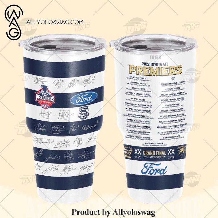Product description information – [Top-selling] Geelong Cats AFL 2022 Premiers Guernsey with Team Signatures Stainless Steel Tumbler 20oz 30oz