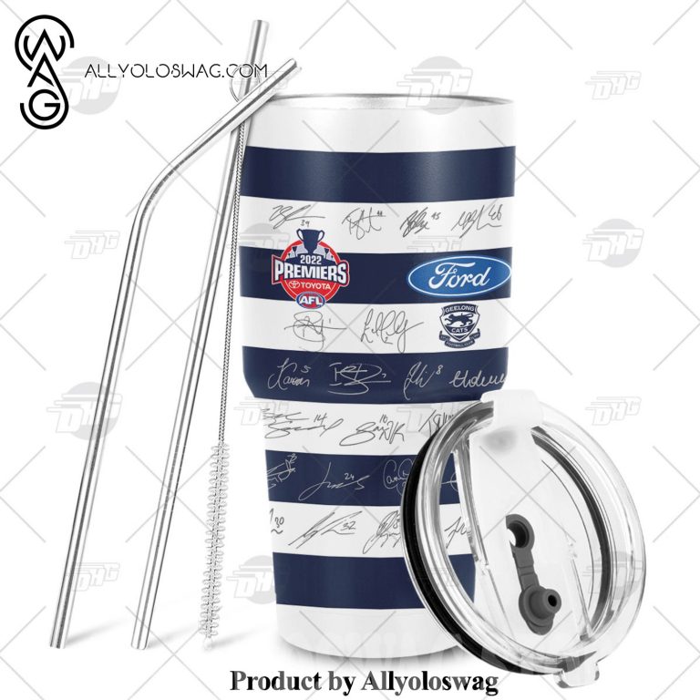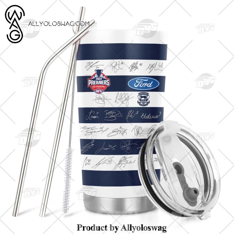NOTE: [Top-selling] Geelong Cats AFL 2022 Premiers Guernsey with Team Signatures Stainless Steel Tumbler 20oz 30oz