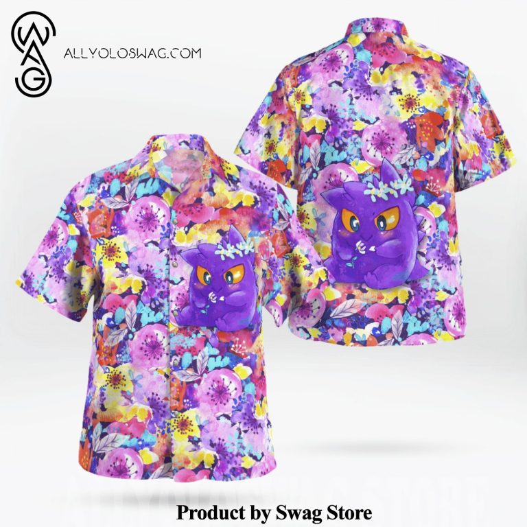 [Top-selling] Gengar Summer Flowers Pokemon 3D Hawaiian Shirt