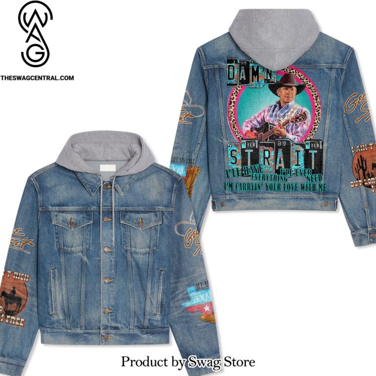 [Top-selling] George Strait Casual Full Printed Hoodie Denim Jacket Description Information: