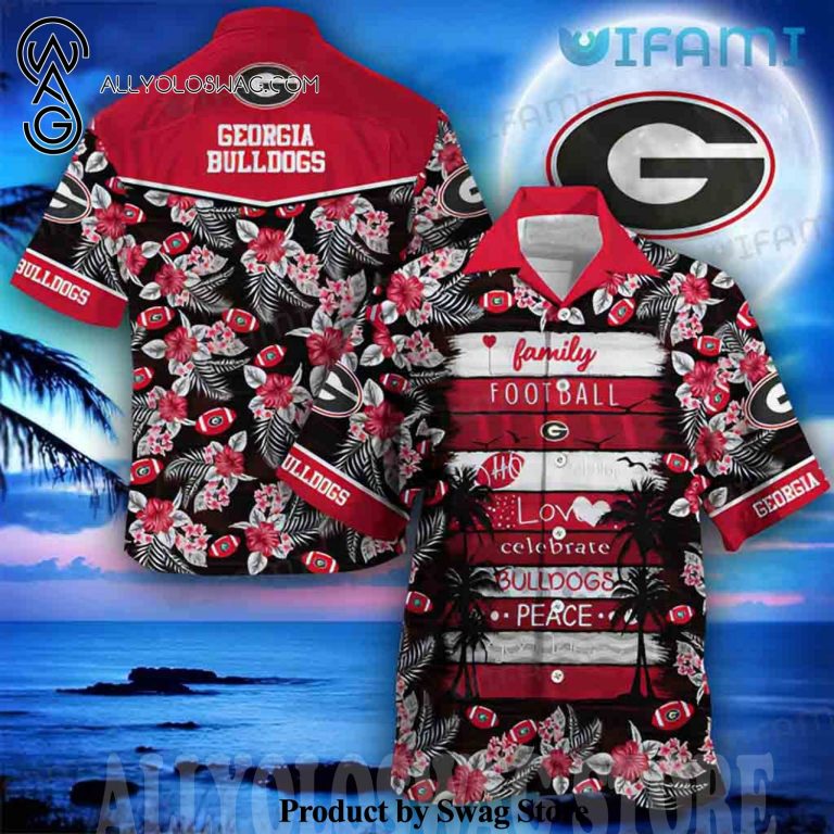 [Top-selling] Georgia Bulldogs Family Football Home Run Love Celebrate Bulldogs Peace Goodness Gift Hawaiian Shirt was hand-tailored in the early days of fashion. This might happen in the comfort of one’s own home or at a custom tailor’s business. These stores immediately sprang up all across the islands, especially in plantation towns and Honolulu. Newly accessible fabrics from throughout the world were sold at dry goods stores, including printed silk from Japan, raw silk, batik, and rayon from the United States mainland, and cotton cloth for kimonos and yukatas.Hawaiian history had long been shaped by Asian immigrants, and apparel designs reflected this. Short- and long-sleeved shirts, as well as women’s skirts, were created using pre-printed textiles from China and Japan and were based on Asian clothing styles. These bright blouses and dresses were the forerunners of today’s Aloha attire. On the islands, we say “ono” to describe something that is pleasantly cool.
