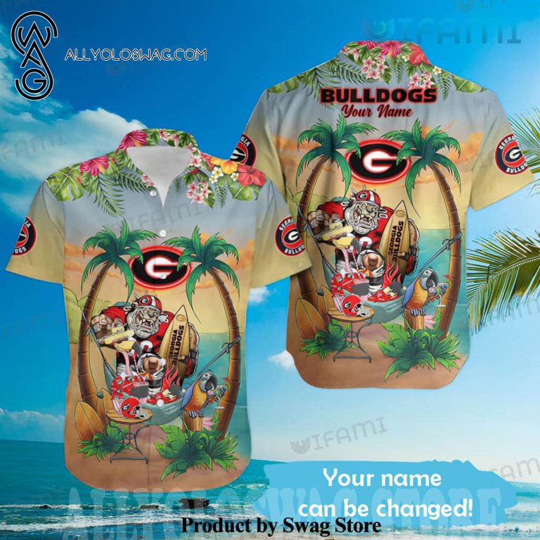 [Top-selling] Georgia Bulldogs Mascot Custom Name GA Football Gift Hawaiian Shirt was hand-tailored in the early days of fashion. This might happen in the comfort of one’s own home or at a custom tailor’s business. These stores immediately sprang up all across the islands, especially in plantation towns and Honolulu. Newly accessible fabrics from throughout the world were sold at dry goods stores, including printed silk from Japan, raw silk, batik, and rayon from the United States mainland, and cotton cloth for kimonos and yukatas.Hawaiian history had long been shaped by Asian immigrants, and apparel designs reflected this. Short- and long-sleeved shirts, as well as women’s skirts, were created using pre-printed textiles from China and Japan and were based on Asian clothing styles. These bright blouses and dresses were the forerunners of today’s Aloha attire. On the islands, we say “ono” to describe something that is pleasantly cool.