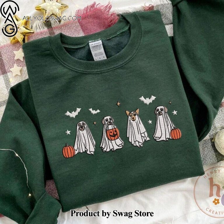 Product description information [Top-selling] Ghost Dogs Halloween Embroidery Sweatshirt, Halloween Ghost Dogs Embroidered Sweatshirt, Halloween Tricks For Treats Ghost