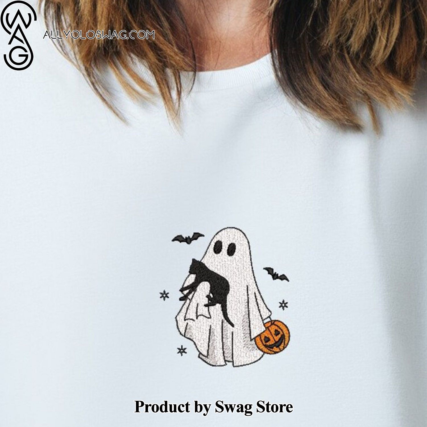 [Top-selling] Ghost with Cat Embroidered Sweatshirt