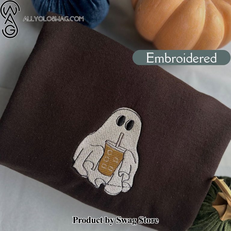 NOTE: [Top-selling] Ghost With Coffee Sweatshirt, Ghost Embroidered Sweatshirt, Cute Ghost Sweatshirt, Spooky Coffee Lovers Sweatshirt