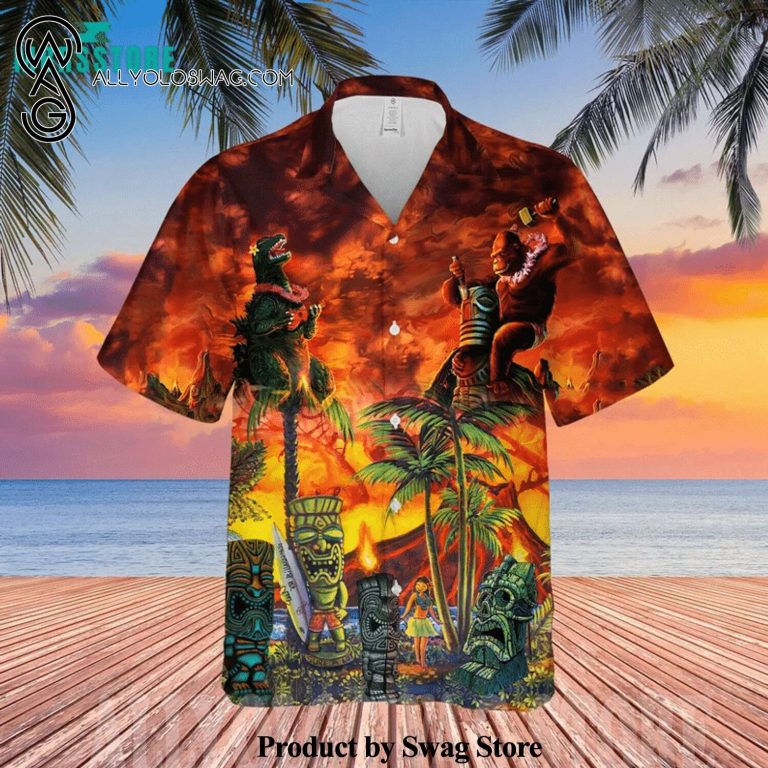 Some details about our product [Top-selling] Godzilla And Kong Tropical Volcanic All Over Print Hawaiian Shirt