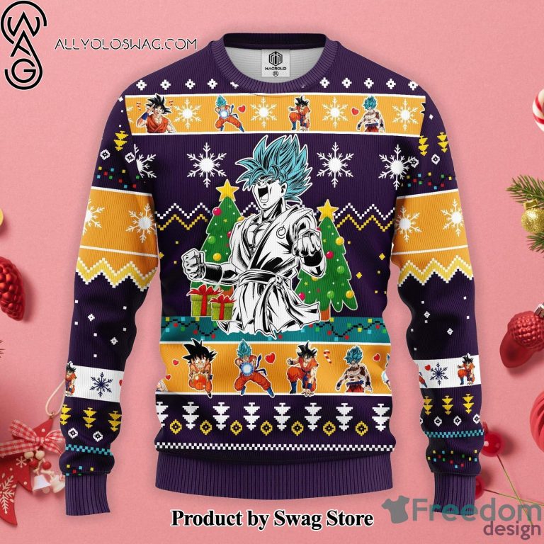 Some details about our [Top-selling] Goku Blue Super Saiyan God Dragon Ball Christmas Gift Ugly Christmas Sweater