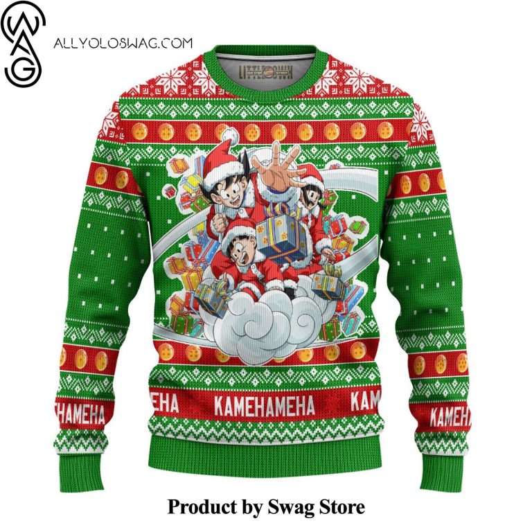 Some details about our [Top-selling] Goku Family Dragon Ball Anime Green Xmas Gift Ugly Christmas Sweater
