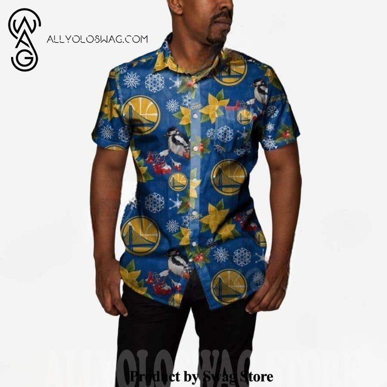 [Top-selling] Golden State Warriors Mistletoe Summer Set Hawaiian Shirt was hand-tailored in the early days of fashion. This might happen in the comfort of one’s own home or at a custom tailor’s business. These stores immediately sprang up all across the islands, especially in plantation towns and Honolulu. Newly accessible fabrics from throughout the world were sold at dry goods stores, including printed silk from Japan, raw silk, batik, and rayon from the United States mainland, and cotton cloth for kimonos and yukatas.Hawaiian history had long been shaped by Asian immigrants, and apparel designs reflected this. Short- and long-sleeved shirts, as well as women’s skirts, were created using pre-printed textiles from China and Japan and were based on Asian clothing styles. These bright blouses and dresses were the forerunners of today’s Aloha attire. On the islands, we say “ono” to describe something that is pleasantly cool.