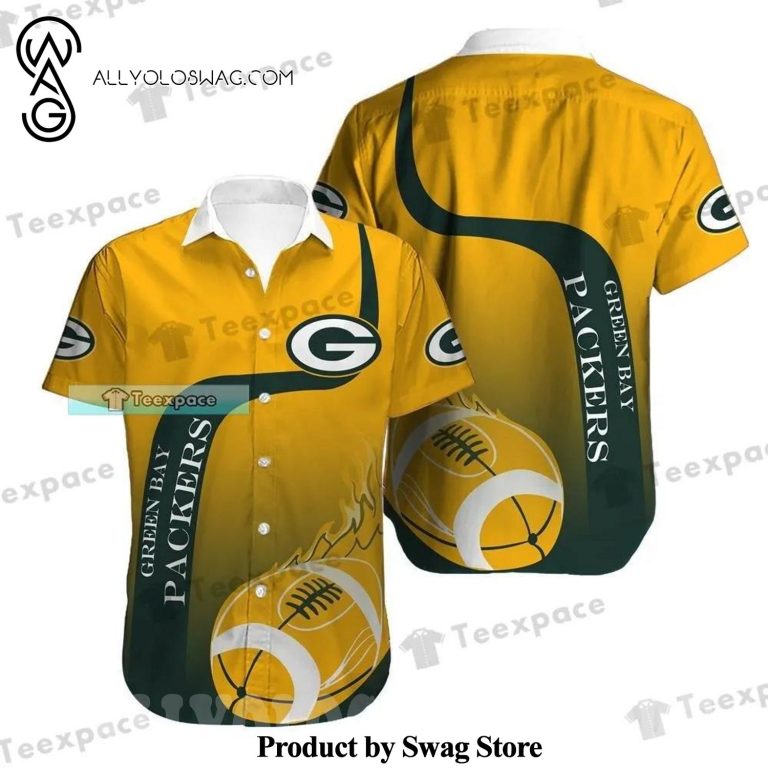[Top-selling] Green Bay Packers Ball In Flame Golden Summer Set Hawaiian Shirt was hand-tailored in the early days of fashion. This might happen in the comfort of one’s own home or at a custom tailor’s business. These stores immediately sprang up all across the islands, especially in plantation towns and Honolulu. Newly accessible fabrics from throughout the world were sold at dry goods stores, including printed silk from Japan, raw silk, batik, and rayon from the United States mainland, and cotton cloth for kimonos and yukatas.Hawaiian history had long been shaped by Asian immigrants, and apparel designs reflected this. Short- and long-sleeved shirts, as well as women’s skirts, were created using pre-printed textiles from China and Japan and were based on Asian clothing styles. These bright blouses and dresses were the forerunners of today’s Aloha attire. On the islands, we say “ono” to describe something that is pleasantly cool.