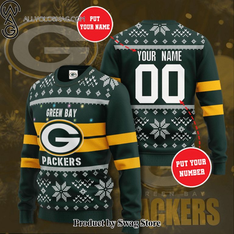 NOTE: [Top-selling] Green Bay Packers Custom Name Christmas Christmas Ugly Wool Knitted Sweater
