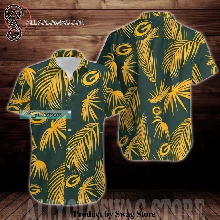 [Top-selling] Green Bay Packers Godlen Leaf Pattern Summer Set Hawaiian Shirt was hand-tailored in the early days of fashion. This might happen in the comfort of one’s own home or at a custom tailor’s business. These stores immediately sprang up all across the islands, especially in plantation towns and Honolulu. Newly accessible fabrics from throughout the world were sold at dry goods stores, including printed silk from Japan, raw silk, batik, and rayon from the United States mainland, and cotton cloth for kimonos and yukatas.Hawaiian history had long been shaped by Asian immigrants, and apparel designs reflected this. Short- and long-sleeved shirts, as well as women’s skirts, were created using pre-printed textiles from China and Japan and were based on Asian clothing styles. These bright blouses and dresses were the forerunners of today’s Aloha attire. On the islands, we say “ono” to describe something that is pleasantly cool.