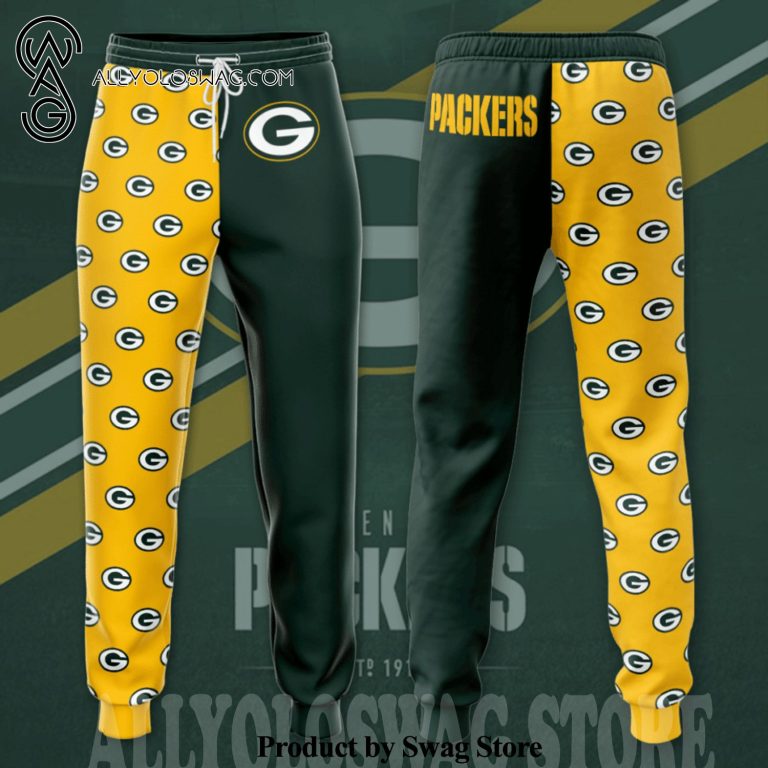 NOTE: [Top-selling] Green Bay Packers Logo Full Printing Casual Unisex Sweatpants – Dark Green Yellow