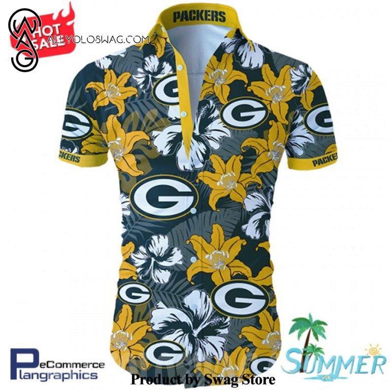[Top-selling] Green Bay Packers Tropical Flower Best Outfit Hawaiian Shirt was hand-tailored in the early days of fashion. This might happen in the comfort of one’s own home or at a custom tailor’s business. These stores immediately sprang up all across the islands, especially in plantation towns and Honolulu. Newly accessible fabrics from throughout the world were sold at dry goods stores, including printed silk from Japan, raw silk, batik, and rayon from the United States mainland, and cotton cloth for kimonos and yukatas.Hawaiian history had long been shaped by Asian immigrants, and apparel designs reflected this. Short- and long-sleeved shirts, as well as women’s skirts, were created using pre-printed textiles from China and Japan and were based on Asian clothing styles. These bright blouses and dresses were the forerunners of today’s Aloha attire. On the islands, we say “ono” to describe something that is pleasantly cool.