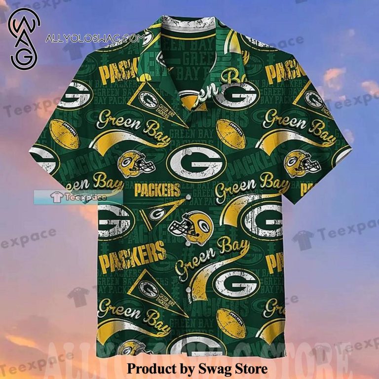 [Top-selling] Green Bay Packers Wavy Helmet Summer Set Hawaiian Shirt was hand-tailored in the early days of fashion. This might happen in the comfort of one’s own home or at a custom tailor’s business. These stores immediately sprang up all across the islands, especially in plantation towns and Honolulu. Newly accessible fabrics from throughout the world were sold at dry goods stores, including printed silk from Japan, raw silk, batik, and rayon from the United States mainland, and cotton cloth for kimonos and yukatas.Hawaiian history had long been shaped by Asian immigrants, and apparel designs reflected this. Short- and long-sleeved shirts, as well as women’s skirts, were created using pre-printed textiles from China and Japan and were based on Asian clothing styles. These bright blouses and dresses were the forerunners of today’s Aloha attire. On the islands, we say “ono” to describe something that is pleasantly cool.