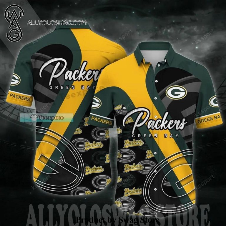[Top-selling] Green Bay Packers Yellow Diagonal Stripe Summer Set Hawaiian Shirt was hand-tailored in the early days of fashion. This might happen in the comfort of one’s own home or at a custom tailor’s business. These stores immediately sprang up all across the islands, especially in plantation towns and Honolulu. Newly accessible fabrics from throughout the world were sold at dry goods stores, including printed silk from Japan, raw silk, batik, and rayon from the United States mainland, and cotton cloth for kimonos and yukatas.Hawaiian history had long been shaped by Asian immigrants, and apparel designs reflected this. Short- and long-sleeved shirts, as well as women’s skirts, were created using pre-printed textiles from China and Japan and were based on Asian clothing styles. These bright blouses and dresses were the forerunners of today’s Aloha attire. On the islands, we say “ono” to describe something that is pleasantly cool.