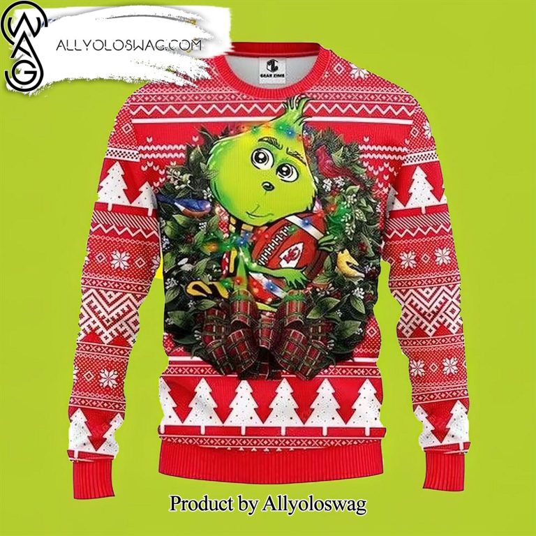 Some details about our [Top-selling] Grinch Hug Kansas City Chiefs Ugly Xmas Wool Knitted Sweater
