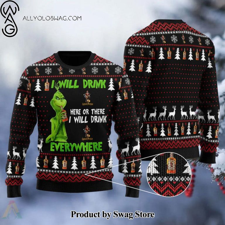 [Top-selling] Grinch I Will Drink Captain Morgan Everywhere Woolen Christmas Sweater
