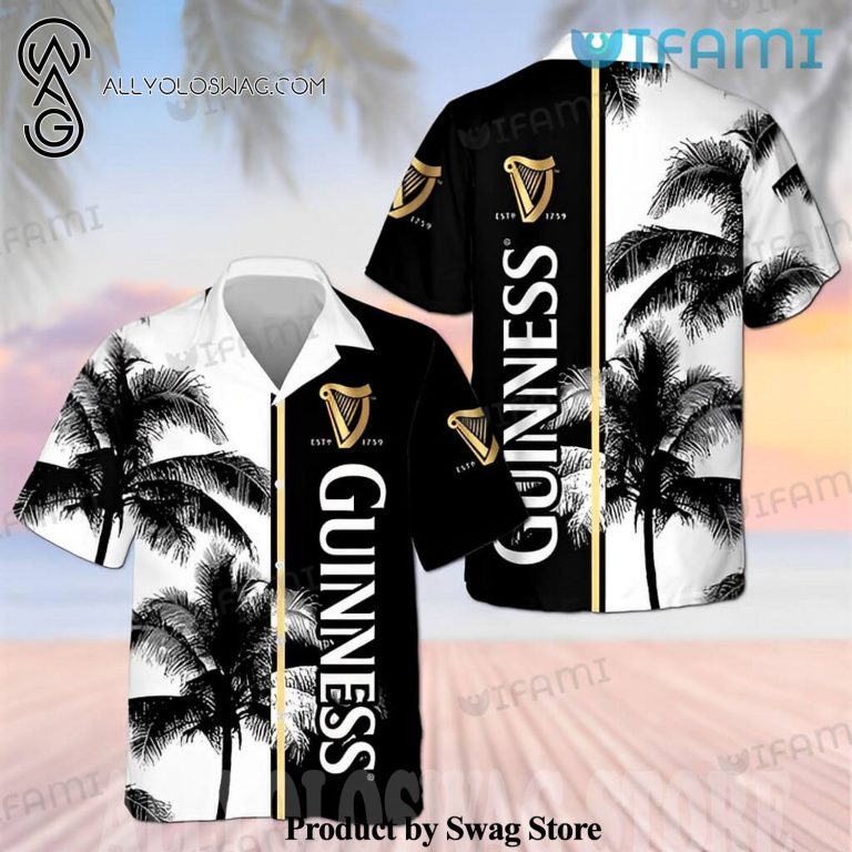 [Top-selling] Guinness Coconut Tree Black White Guinness Beer Gift Hawaiian Shirt was hand-tailored in the early days of fashion. This might happen in the comfort of one’s own home or at a custom tailor’s business. These stores immediately sprang up all across the islands, especially in plantation towns and Honolulu. Newly accessible fabrics from throughout the world were sold at dry goods stores, including printed silk from Japan, raw silk, batik, and rayon from the United States mainland, and cotton cloth for kimonos and yukatas.Hawaiian history had long been shaped by Asian immigrants, and apparel designs reflected this. Short- and long-sleeved shirts, as well as women’s skirts, were created using pre-printed textiles from China and Japan and were based on Asian clothing styles. These bright blouses and dresses were the forerunners of today’s Aloha attire. On the islands, we say “ono” to describe something that is pleasantly cool.