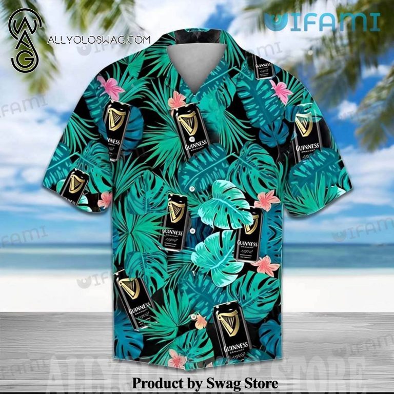 [Top-selling] Guinness Tropical Leaves Cans Guinness Beer Gift Hawaiian Shirt was hand-tailored in the early days of fashion. This might happen in the comfort of one’s own home or at a custom tailor’s business. These stores immediately sprang up all across the islands, especially in plantation towns and Honolulu. Newly accessible fabrics from throughout the world were sold at dry goods stores, including printed silk from Japan, raw silk, batik, and rayon from the United States mainland, and cotton cloth for kimonos and yukatas.Hawaiian history had long been shaped by Asian immigrants, and apparel designs reflected this. Short- and long-sleeved shirts, as well as women’s skirts, were created using pre-printed textiles from China and Japan and were based on Asian clothing styles. These bright blouses and dresses were the forerunners of today’s Aloha attire. On the islands, we say “ono” to describe something that is pleasantly cool.