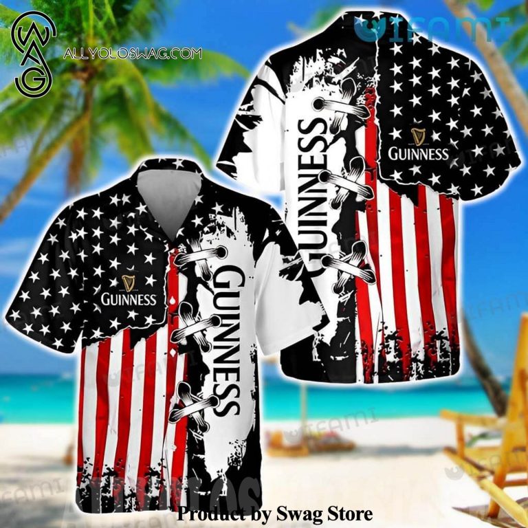 [Top-selling] Guinness USA Flag Beer Guinness Gift Hawaiian Shirt was hand-tailored in the early days of fashion. This might happen in the comfort of one’s own home or at a custom tailor’s business. These stores immediately sprang up all across the islands, especially in plantation towns and Honolulu. Newly accessible fabrics from throughout the world were sold at dry goods stores, including printed silk from Japan, raw silk, batik, and rayon from the United States mainland, and cotton cloth for kimonos and yukatas.Hawaiian history had long been shaped by Asian immigrants, and apparel designs reflected this. Short- and long-sleeved shirts, as well as women’s skirts, were created using pre-printed textiles from China and Japan and were based on Asian clothing styles. These bright blouses and dresses were the forerunners of today’s Aloha attire. On the islands, we say “ono” to describe something that is pleasantly cool.