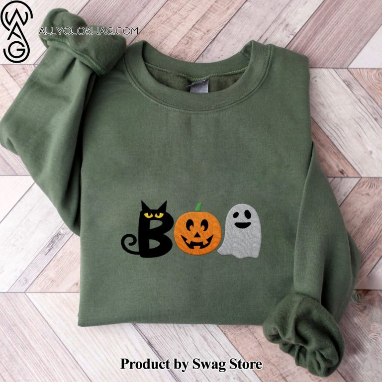 NOTE: [Top-selling] Halloween Boo Embroidered Sweatshirt, Spooky Season Crewneck Sweatshirt