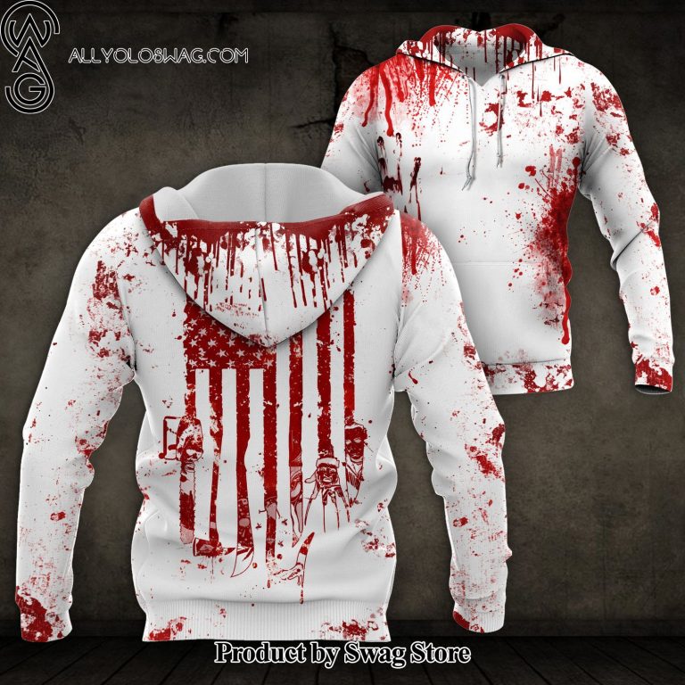 Product description information [Top-selling] Halloween Horror American Flag Blood Stains Pullover Shirts and Sweatpants