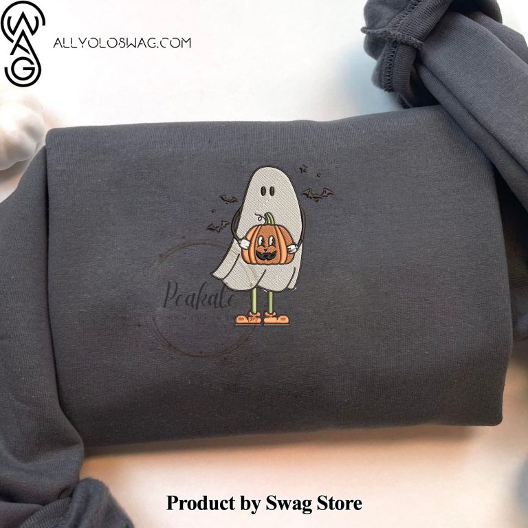 NOTE: [Top-selling] Halloween Sweatshirt, Embroidered Ghost Sweatshirt, ghost with pumpkin