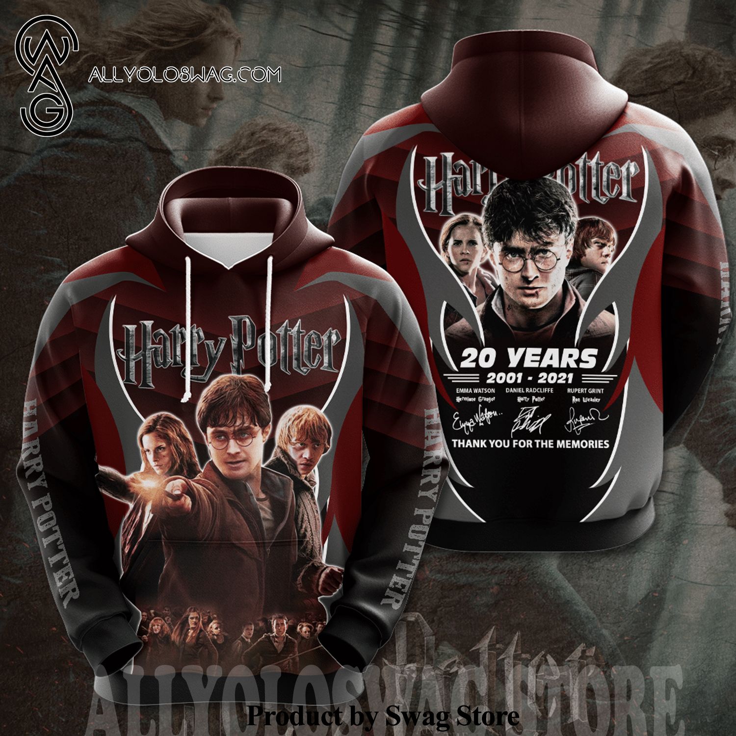 Product description information [Top-selling] Harry Potter 20 Years 2001 2021 Thank You For Memories Signatures Full Printing Hoodie – Red