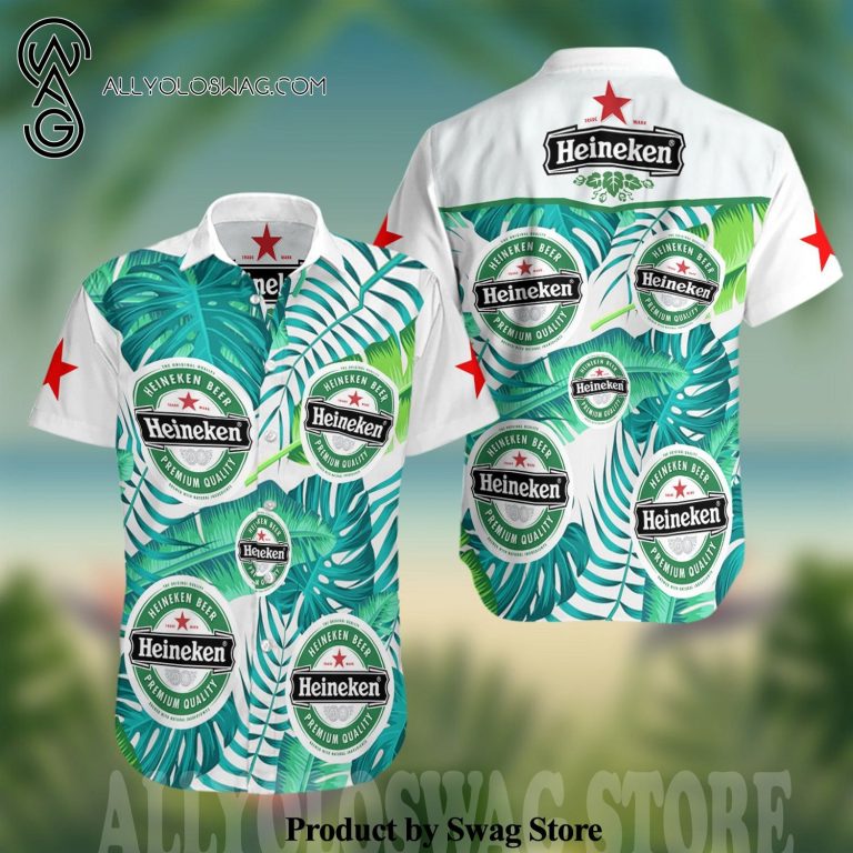 Some details about our product [Top-selling] Heineken Beer Tropical Leafs All Over Print Hawaiian Shirt