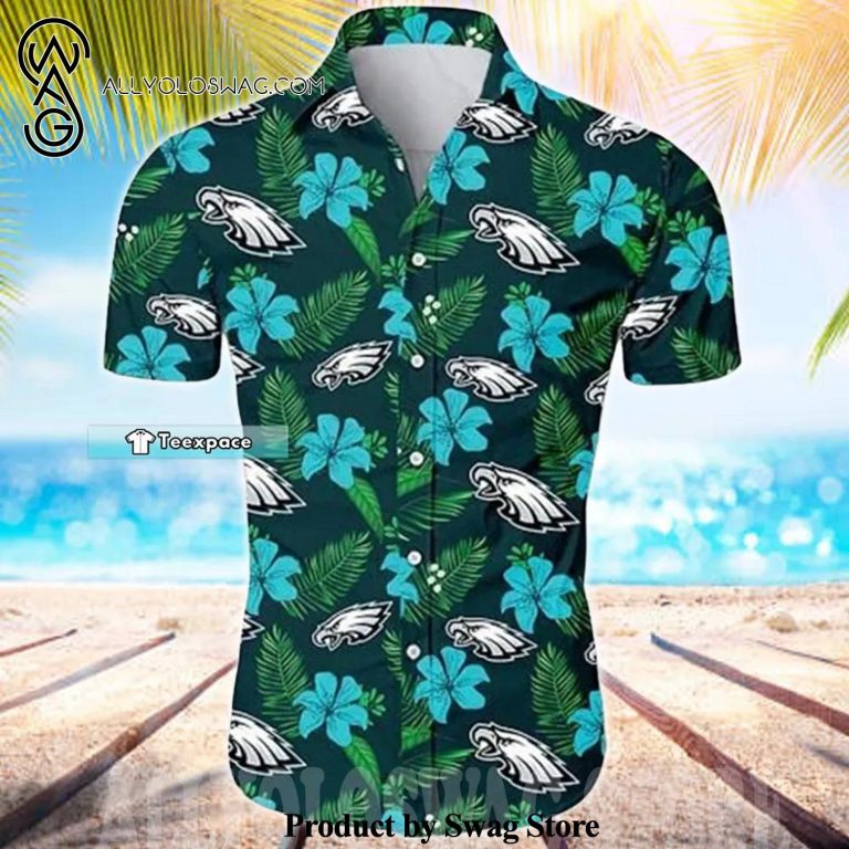 [Top-selling] Hibiscus Tropical Flowers Eagles Summer Set Hawaiian Shirt was hand-tailored in the early days of fashion. This might happen in the comfort of one’s own home or at a custom tailor’s business. These stores immediately sprang up all across the islands, especially in plantation towns and Honolulu. Newly accessible fabrics from throughout the world were sold at dry goods stores, including printed silk from Japan, raw silk, batik, and rayon from the United States mainland, and cotton cloth for kimonos and yukatas.Hawaiian history had long been shaped by Asian immigrants, and apparel designs reflected this. Short- and long-sleeved shirts, as well as women’s skirts, were created using pre-printed textiles from China and Japan and were based on Asian clothing styles. These bright blouses and dresses were the forerunners of today’s Aloha attire. On the islands, we say “ono” to describe something that is pleasantly cool.