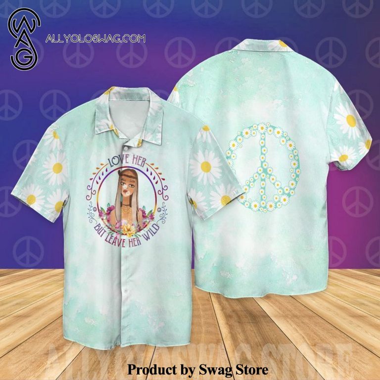 Hawaiian Shirt [Top-selling] Hippie Girl Love Peace Love Her But Leave Her Wild Summer Set Hawaiian Shirt