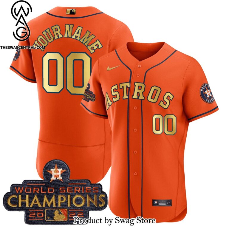 NOTE: [Top-selling] Houston Astros 2023 Champions Orange Gold Custom Best Combo All Over Print Custom Patch Jersey