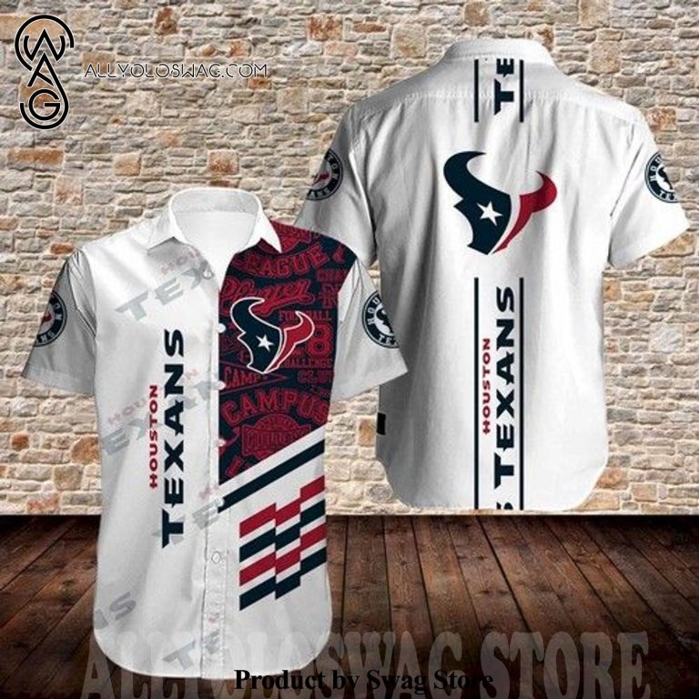 [Top-selling] Houston Texans All Over Print Hawaiian Shirt was hand-tailored in the early days of fashion. This might happen in the comfort of one’s own home or at a custom tailor’s business. These stores immediately sprang up all across the islands, especially in plantation towns and Honolulu. Newly accessible fabrics from throughout the world were sold at dry goods stores, including printed silk from Japan, raw silk, batik, and rayon from the United States mainland, and cotton cloth for kimonos and yukatas.Hawaiian history had long been shaped by Asian immigrants, and apparel designs reflected this. Short- and long-sleeved shirts, as well as women’s skirts, were created using pre-printed textiles from China and Japan and were based on Asian clothing styles. These bright blouses and dresses were the forerunners of today’s Aloha attire. On the islands, we say “ono” to describe something that is pleasantly cool.