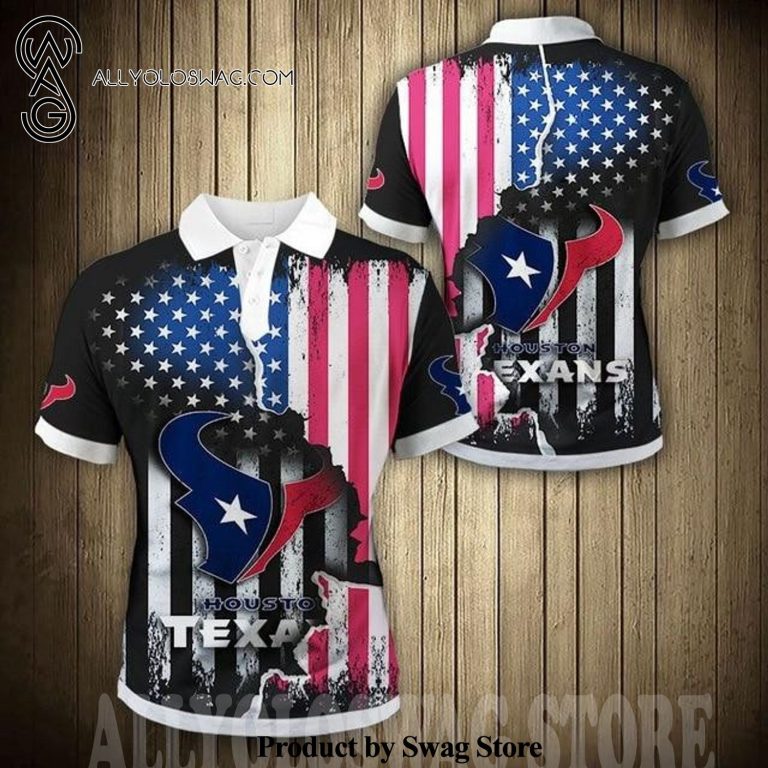 The origins of the [Top-selling] Houston Texans American Flag All Over Printed Polo Shirt can be traced back to the early 20th century when it was primarily worn by polo players. Its design was inspired by the need for a practical yet stylish garment that allowed for ease of movement during the fast-paced game. The polo shirt features a soft collar, a buttoned placket at the neck, and a relaxed fit that allows for comfortable and unrestricted movement.