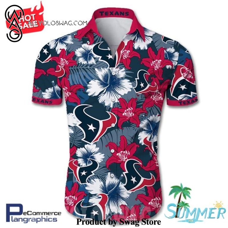 [Top-selling] Houston Texans Cool Version Hawaiian Shirt was hand-tailored in the early days of fashion. This might happen in the comfort of one’s own home or at a custom tailor’s business. These stores immediately sprang up all across the islands, especially in plantation towns and Honolulu. Newly accessible fabrics from throughout the world were sold at dry goods stores, including printed silk from Japan, raw silk, batik, and rayon from the United States mainland, and cotton cloth for kimonos and yukatas.Hawaiian history had long been shaped by Asian immigrants, and apparel designs reflected this. Short- and long-sleeved shirts, as well as women’s skirts, were created using pre-printed textiles from China and Japan and were based on Asian clothing styles. These bright blouses and dresses were the forerunners of today’s Aloha attire. On the islands, we say “ono” to describe something that is pleasantly cool.