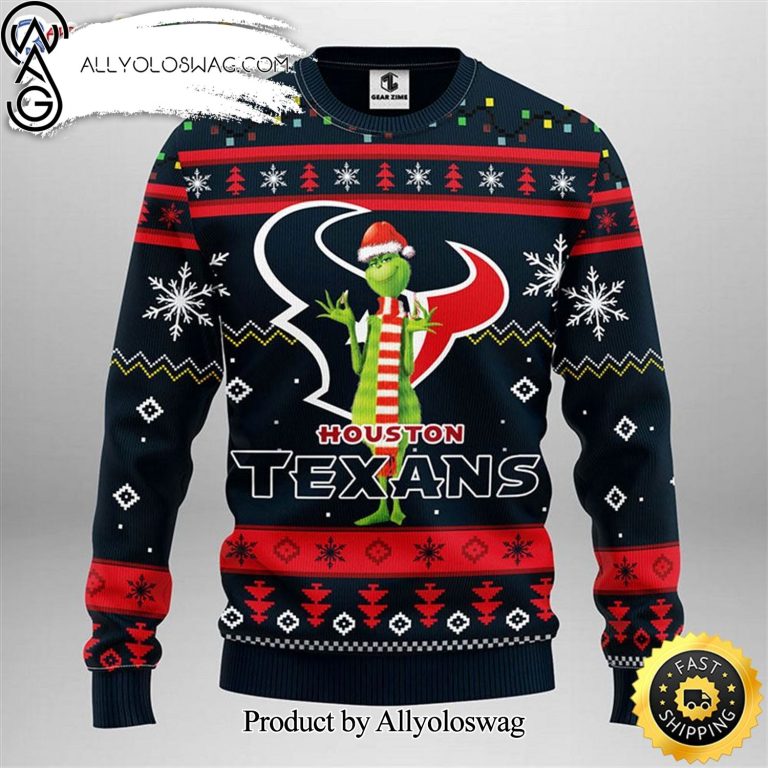 NOTE: [Top-selling] Houston Texans Grinch Show Your Team Spirit Knitting Pattern 3D Print Ugly Sweater