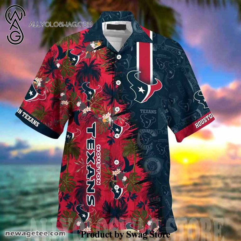 [Top-selling] Houston Texans Nfl Full Printing Hawaiian Shirt was hand-tailored in the early days of fashion. This might happen in the comfort of one’s own home or at a custom tailor’s business. These stores immediately sprang up all across the islands, especially in plantation towns and Honolulu. Newly accessible fabrics from throughout the world were sold at dry goods stores, including printed silk from Japan, raw silk, batik, and rayon from the United States mainland, and cotton cloth for kimonos and yukatas.Hawaiian history had long been shaped by Asian immigrants, and apparel designs reflected this. Short- and long-sleeved shirts, as well as women’s skirts, were created using pre-printed textiles from China and Japan and were based on Asian clothing styles. These bright blouses and dresses were the forerunners of today’s Aloha attire. On the islands, we say “ono” to describe something that is pleasantly cool.