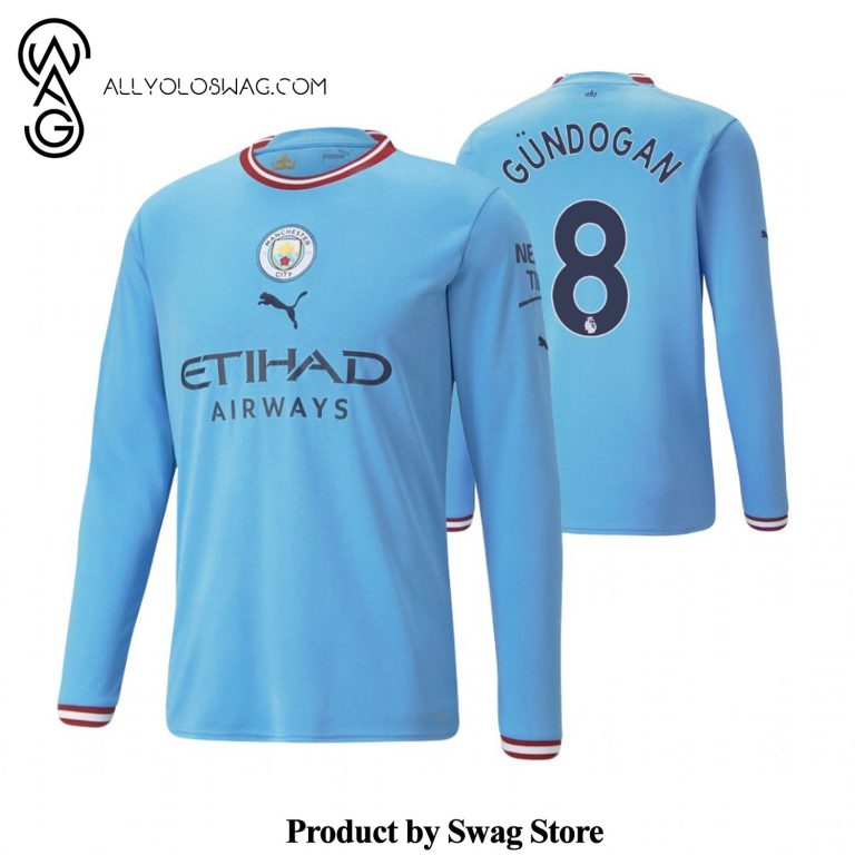 Some details about our product [Top-selling] ilkay Gundogan 8 Manchester City 2022-23 Home Long Sleeve 3D Unisex Jersey – Blue