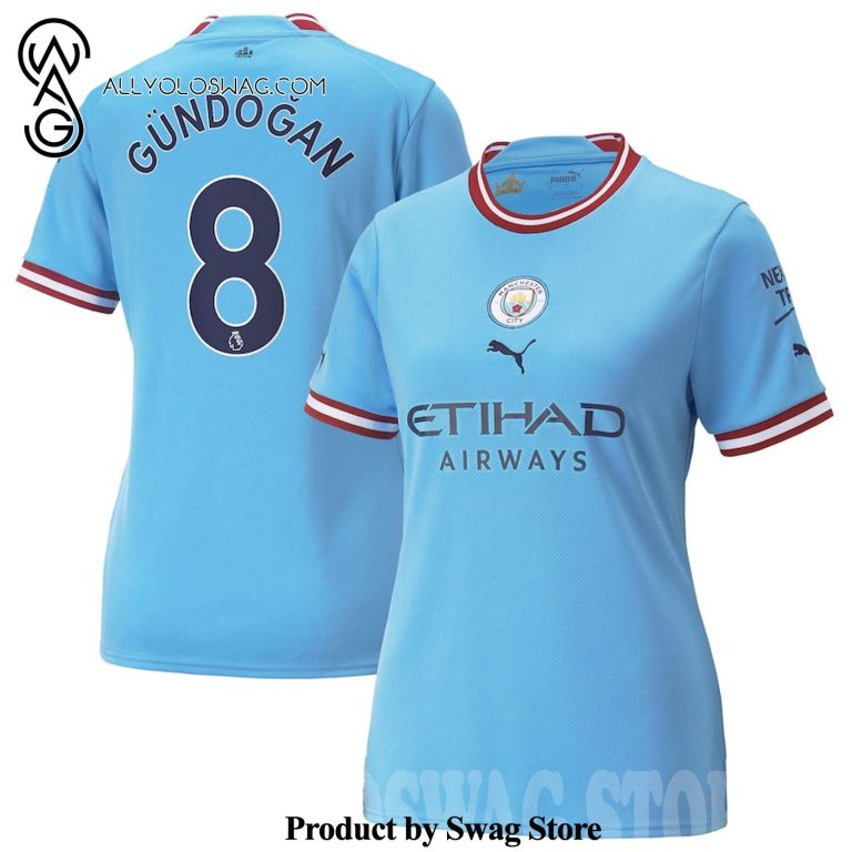 Some details about our product [Top-selling] Ilkay Gundogan 8 Manchester City Women 2022-23 Home Player 3D Unisex Jersey – Sky Blue