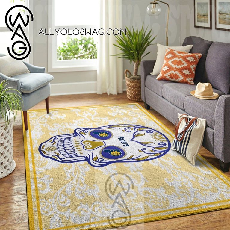 NOTE: [Top-selling] Indiana Pacers NBA Team Logo Skull Flower Style Nice Gift Home Decor Rectangle Area Rug
