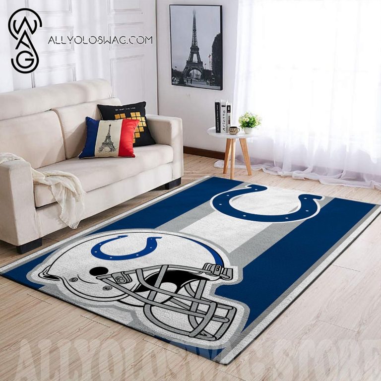 NOTE: [Top-selling] Indianapolis Colts NFL Team Logo Helmet Nice Gift Home Decor Rectangle Area Rug 1651
