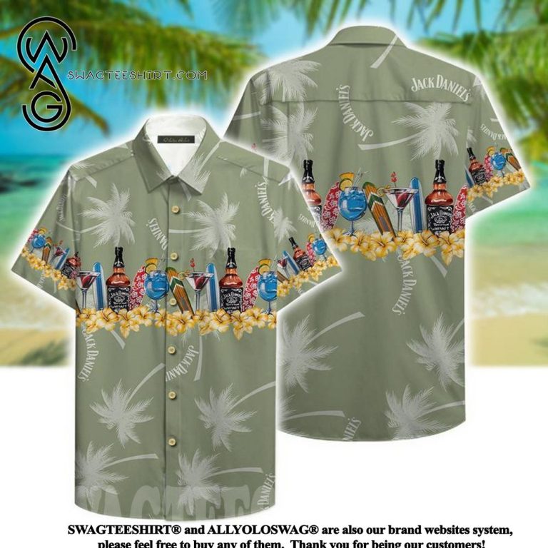 [Top-selling] Jack Daniel High Fashion Summer Set Hawaiian Shirt was hand-tailored in the early days of fashion. This might happen in the comfort of one’s own home or at a custom tailor’s business. These stores immediately sprang up all across the islands, especially in plantation towns and Honolulu. Newly accessible fabrics from throughout the world were sold at dry goods stores, including printed silk from Japan, raw silk, batik, and rayon from the United States mainland, and cotton cloth for kimonos and yukatas.Hawaiian history had long been shaped by Asian immigrants, and apparel designs reflected this. Short- and long-sleeved shirts, as well as women’s skirts, were created using pre-printed textiles from China and Japan and were based on Asian clothing styles. These bright blouses and dresses were the forerunners of today’s Aloha attire. On the islands, we say “ono” to describe something that is pleasantly cool.