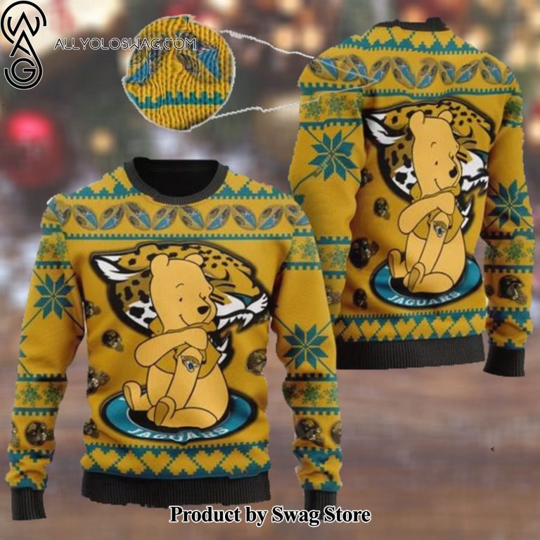 Some details about our [Top-selling] Jacksonville Jaguars NFL American Football Team Logo Cute Winnie The Pooh Bear 3D Ugly Christmas Sweater Shirt For Men And Women On Xmas Days